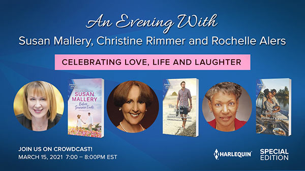 Also, just a heads up. On March 15, I’ll be talking all about Harlequin Special Edition with fellow authors Susan Mallery and Rochelle Alers on crowdcast.